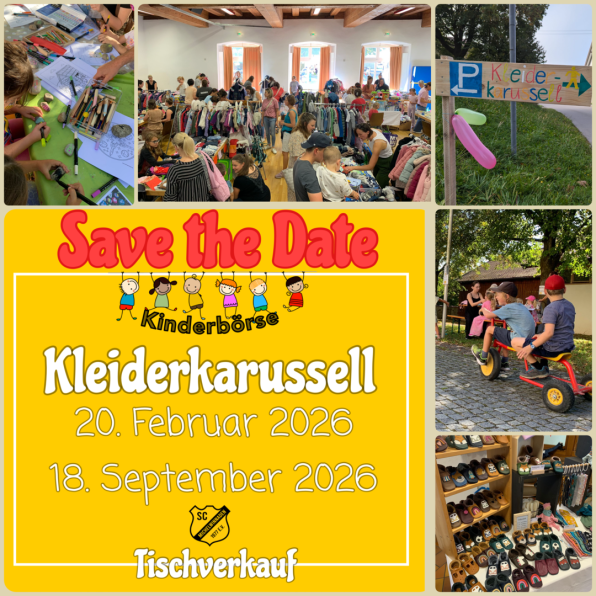 Standanmeldungen für „Kleiderkarussell 2026“ werden unter 0177 7528268 (WhatsAPP) oder unter kleiderkarusell@sc-michelwinnaden.de entgegengenommen. Die Standgebühr beträgt 8€, der Erlös geht an die Jugendabteilung.